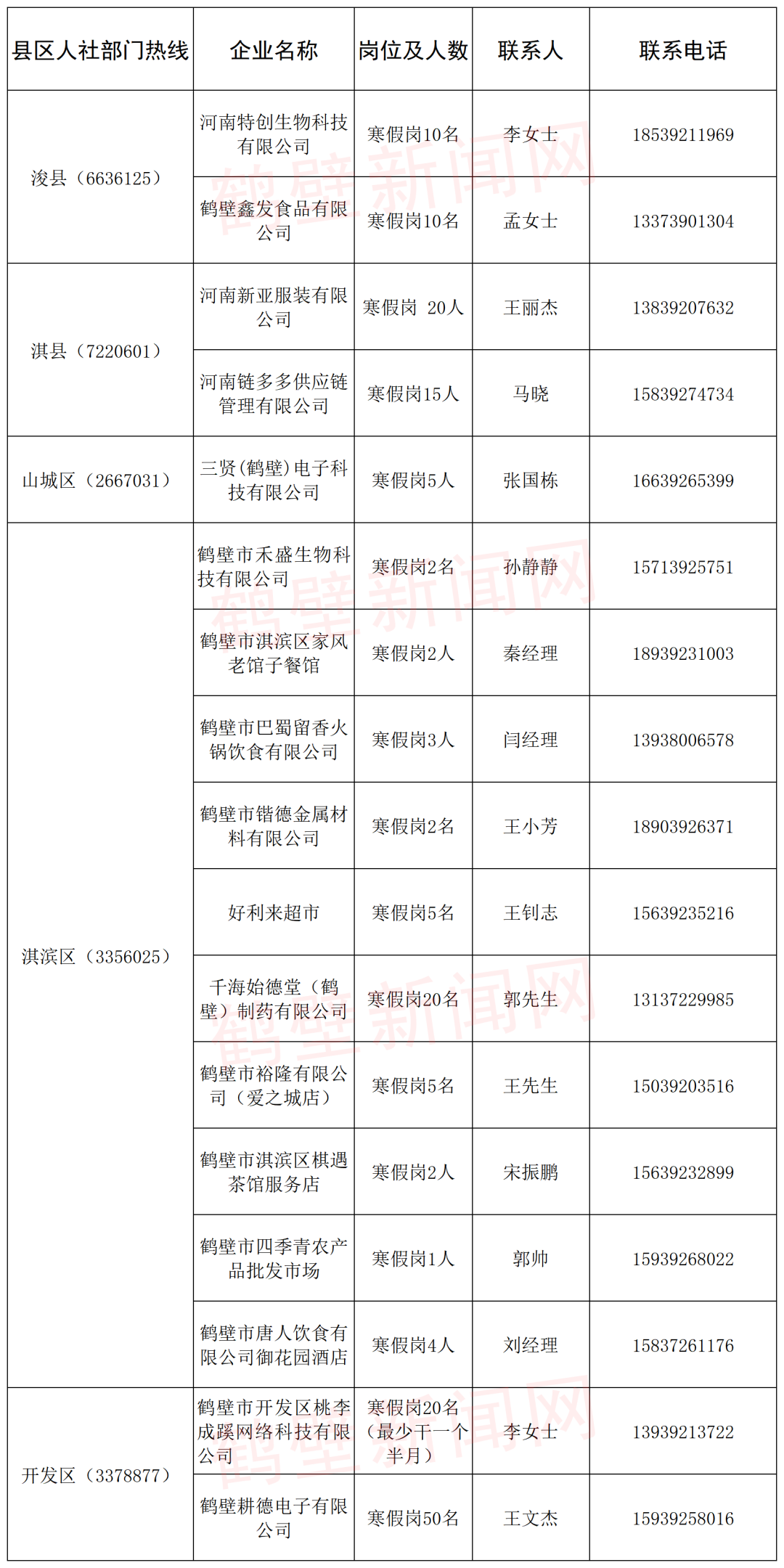 具体岗位、联系方式如下